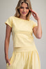 This cropped tee features a mineral washed finish, curved seam detailing with raw edges, short sleeves with subtle rolled hems, and a soft, structured feel for an elevated everyday essential.