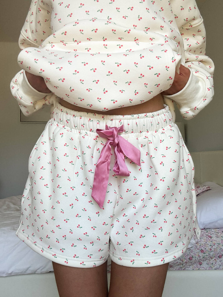The Ivory Cherries All Over Shorts are the sweetest blend of cozy and cute, featuring a playful cherry print on a soft ivory base with a comfy elastic waistband and pink drawstring. Perfect for lounging, sleeping, or slow weekend mornings, these shorts are lightweight, breathable, and effortlessly adorable. Cute, comfy, and made for cherry-sweet dreams 🍒✨